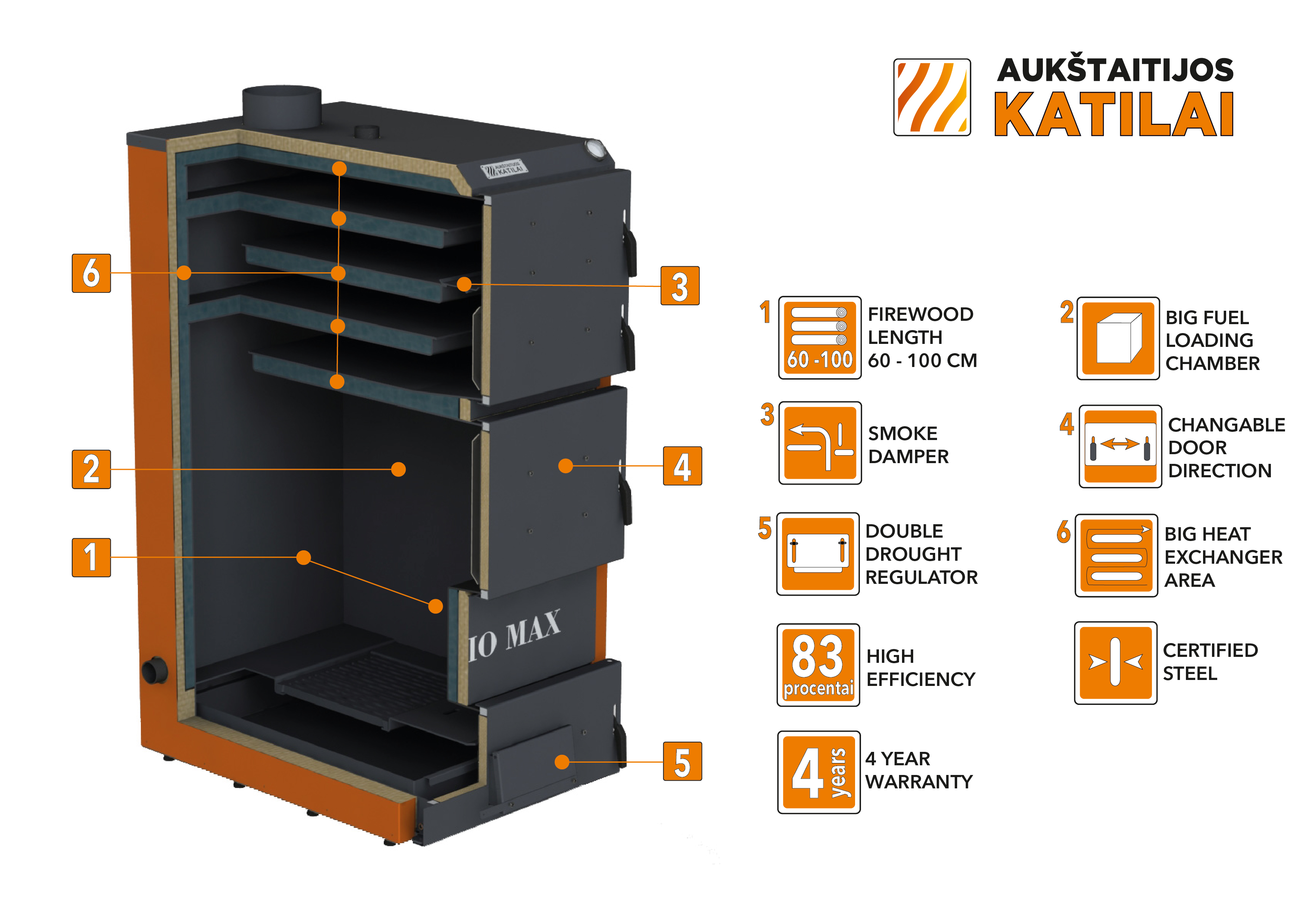 BIO MAX pealtpõlemiskatlad, tahkeküttekatlad 50-100 kW, ROOSTEVABAST TERASEST