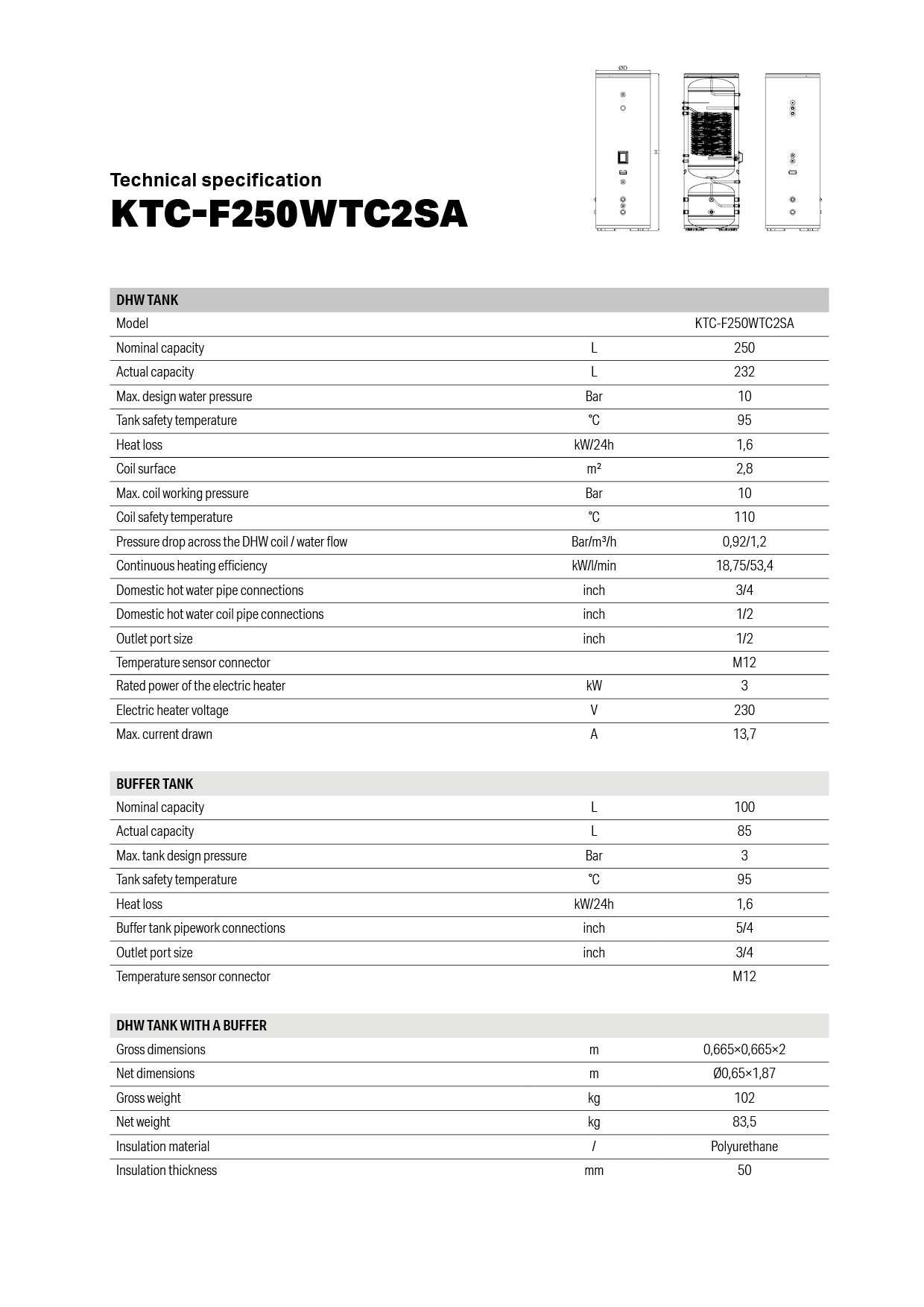 Kaisai KTC-F250WTC2SA soojaveeboiler 250 l + puhverpaak 100 l